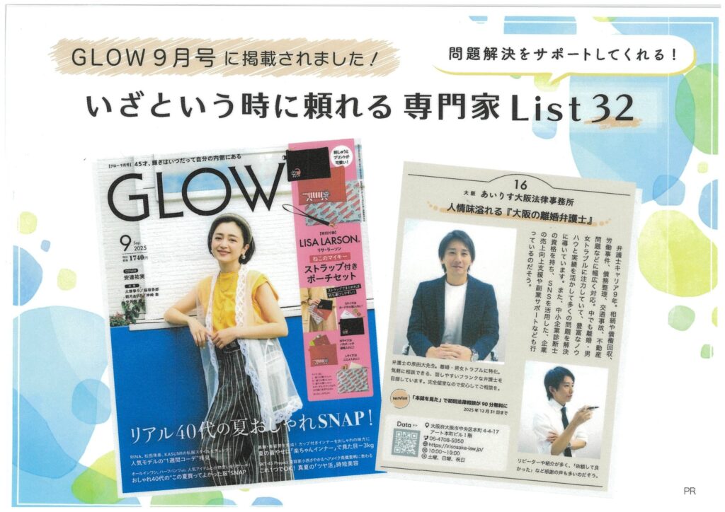 当事務所が、女性誌【GLOW:9月号】「いざという時に頼れる専門家List32」に掲載されました!